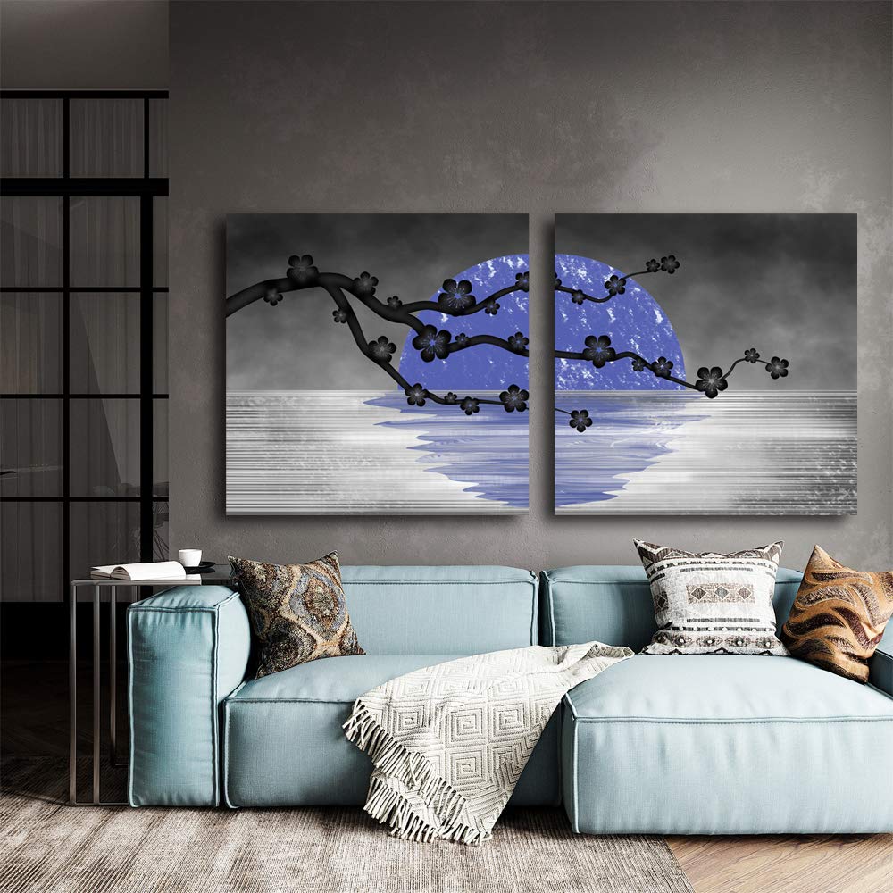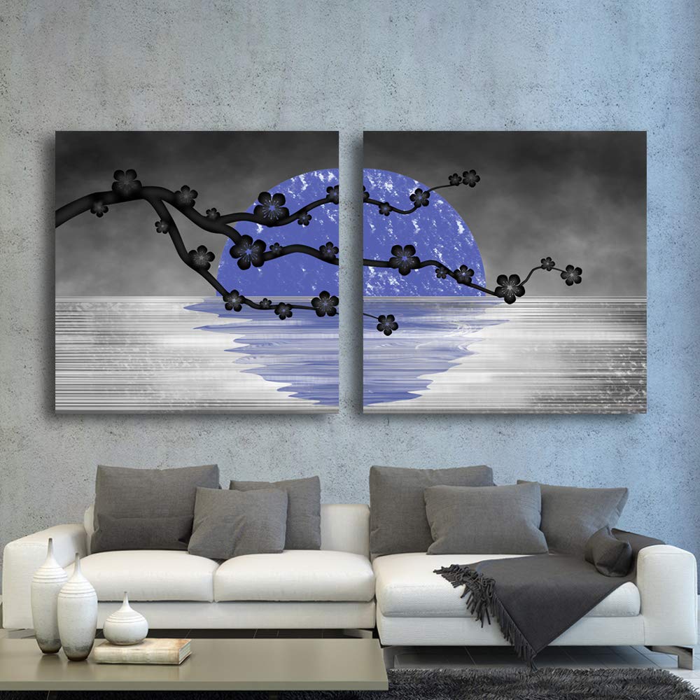 MUDECOR Canvas Wall Art Abstract Beautiful Flowers Plum Blossoms Painting Artwork for Home Prints Framed - 24"x24" x 2 Panels