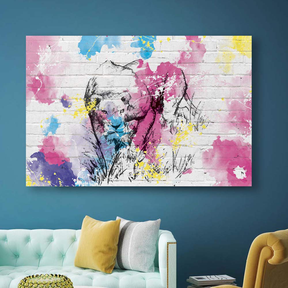 MUDECOR Canvas Wall Art Abstract Ink Animals Painting Artwork for Home Prints Framed - 24x36 inches