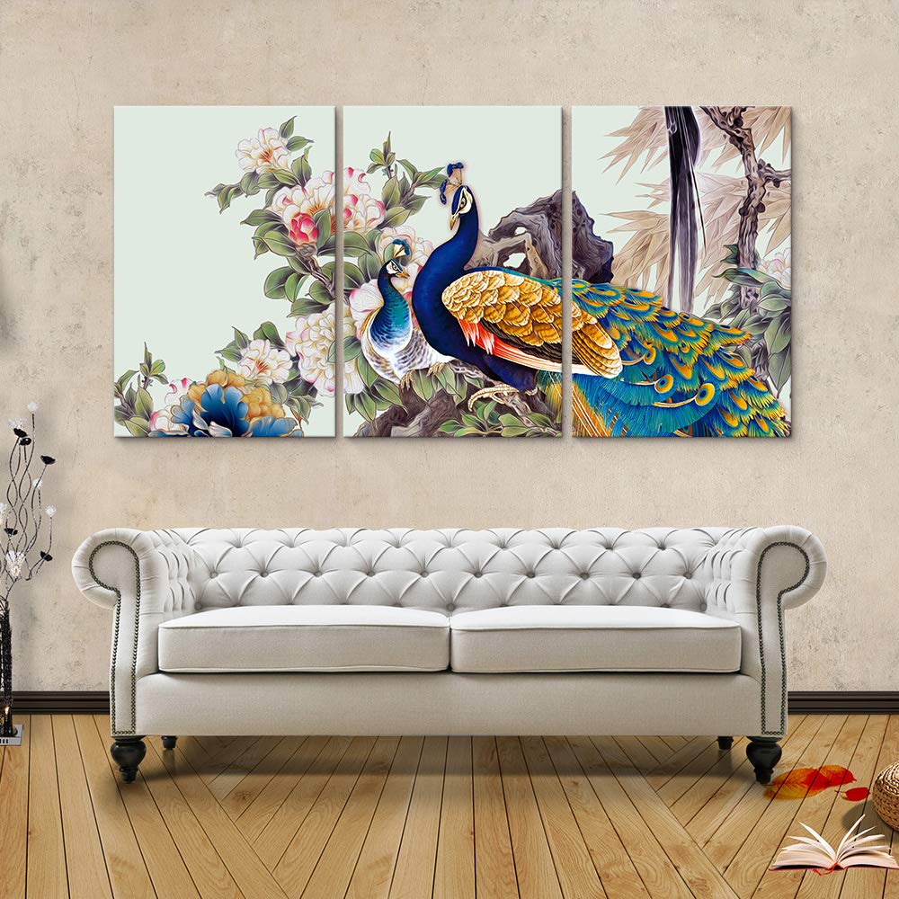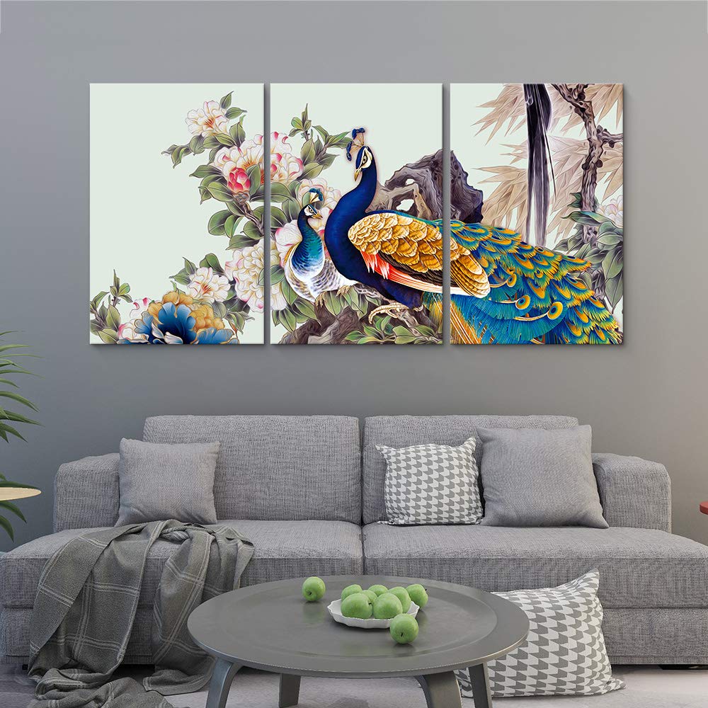 MUDECOR Canvas Wall Art Abstract Vintage Peacock Painting Artwork for Home Prints Framed x 3 Panels