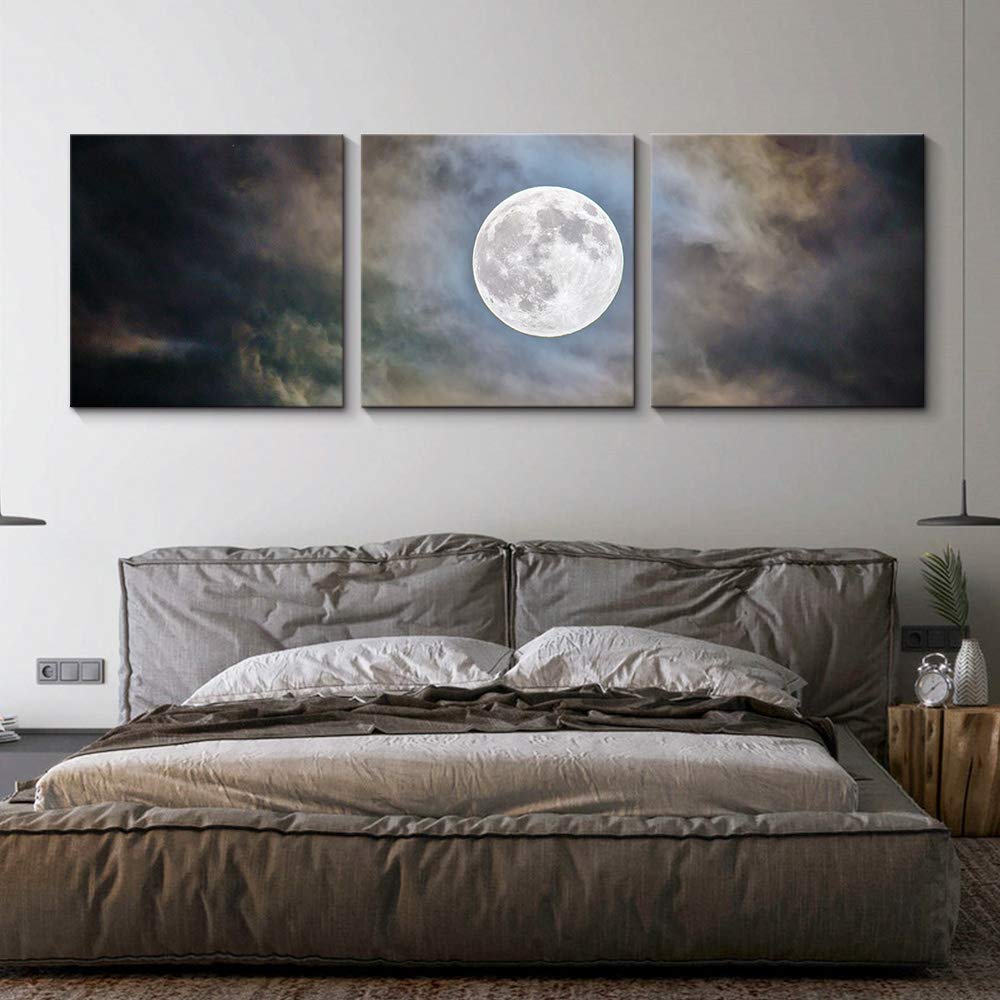MUDECOR Canvas Wall Art Beautiful Moon Painting Artwork for Home Prints Framed - 16"x16"x3 Panels