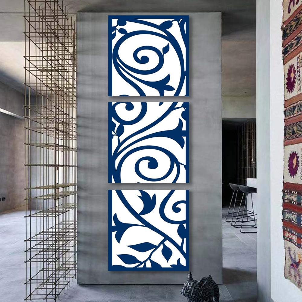 MUDECOR Canvas Wall Art Blue Flowers Pattern Painting Artwork for Home Prints Framed 24 Panels