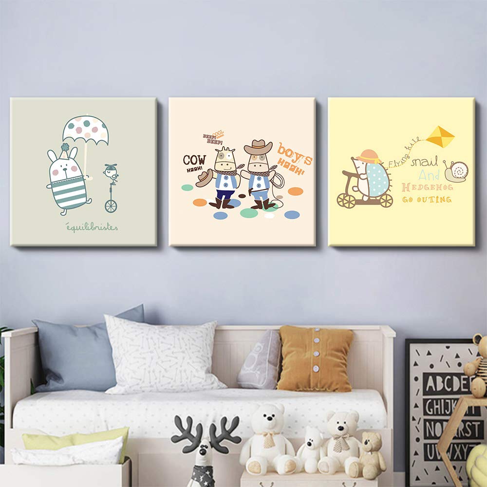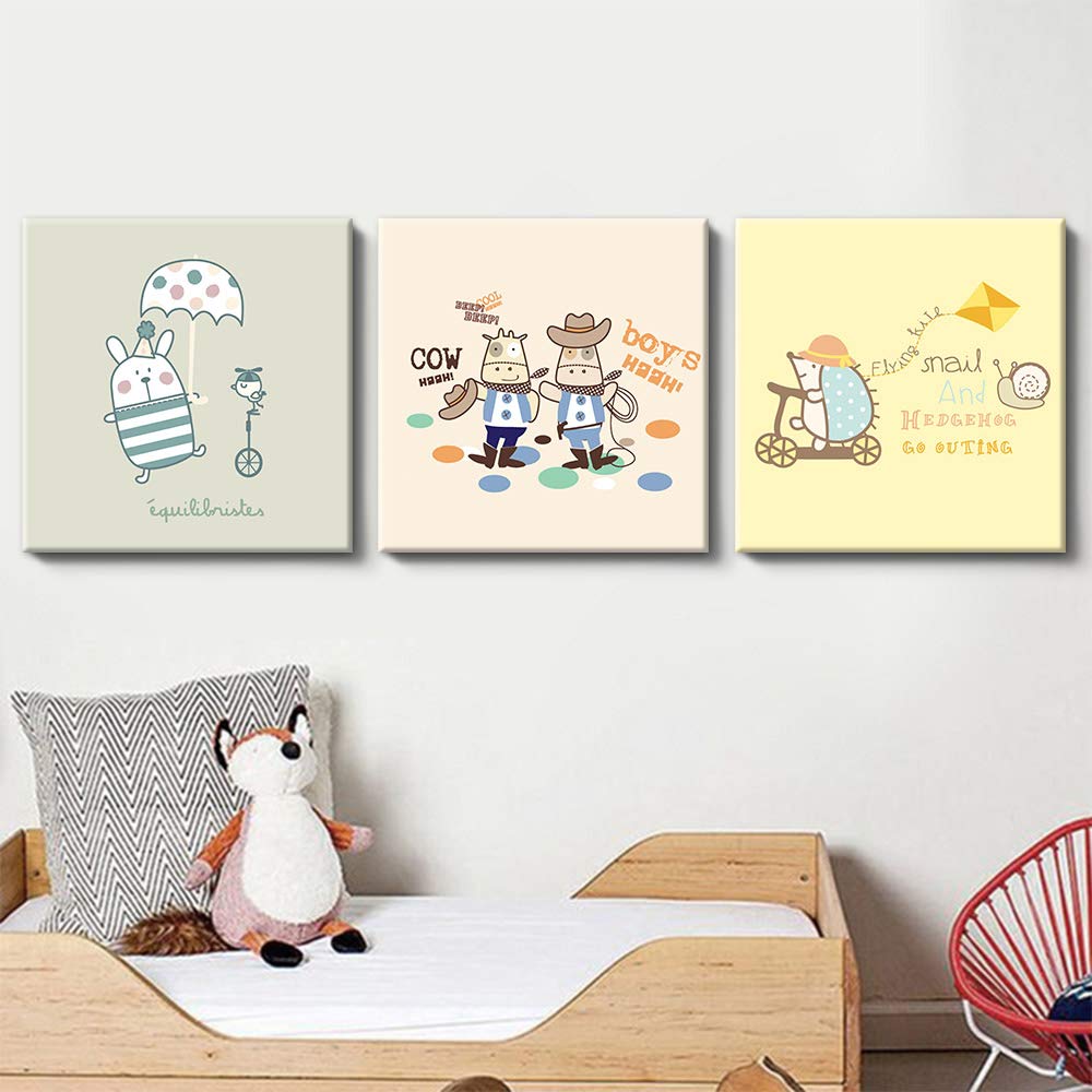 MUDECOR Canvas Wall Art Children Funny Animals Painting Artwork for Home Prints Framed - 16"x16"x3 Panels