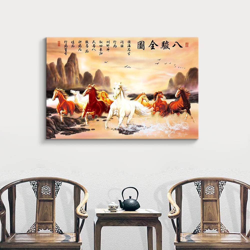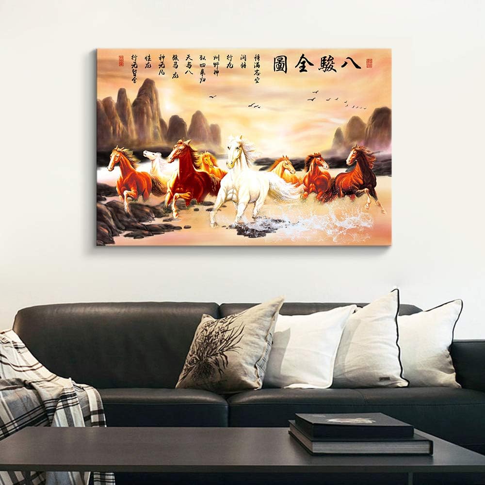 MUDECOR Canvas Wall Art Chinese Eight Horses Painting Artwork for Home Prints Framed inches