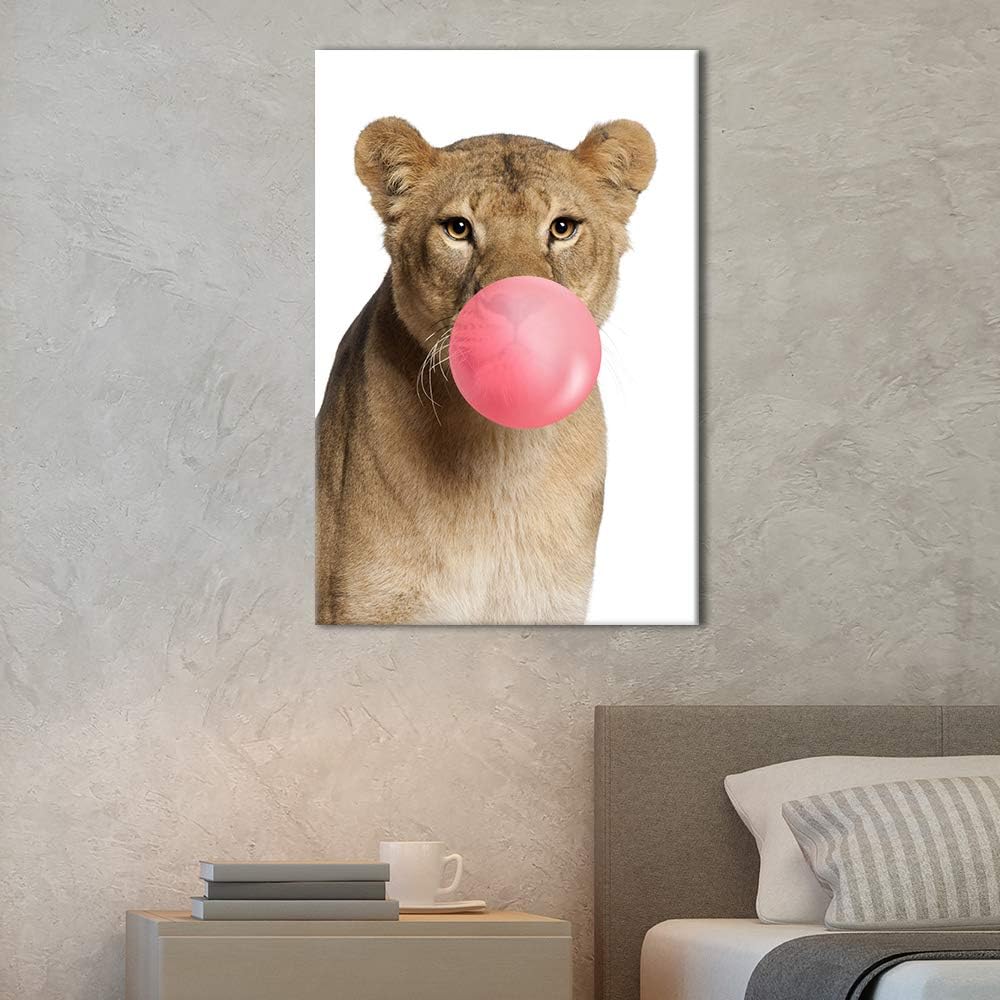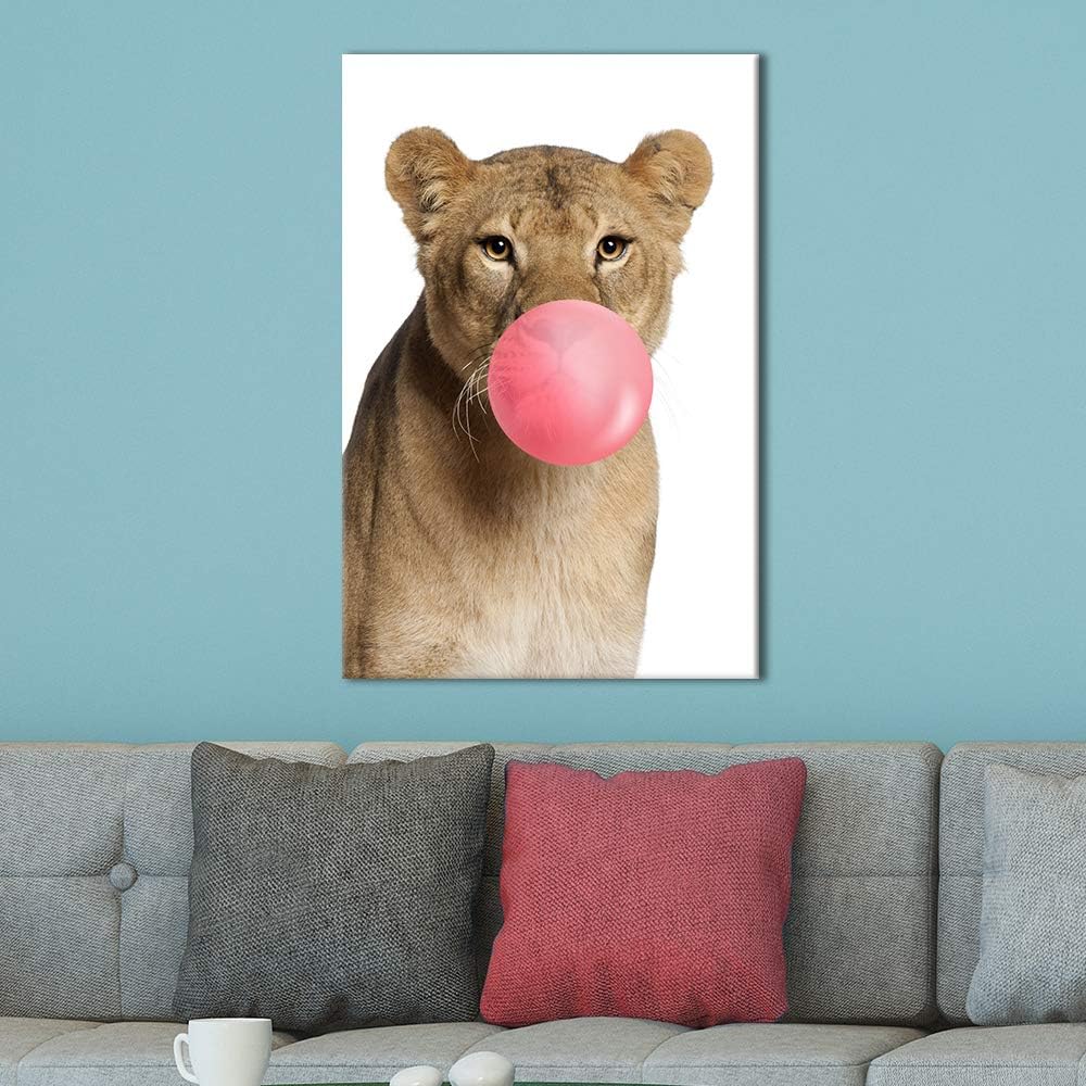 MUDECOR Canvas Wall Art Cute Animals Playing Bubblegum Painting Artwork for Home Prints Framed - 16x24 inches