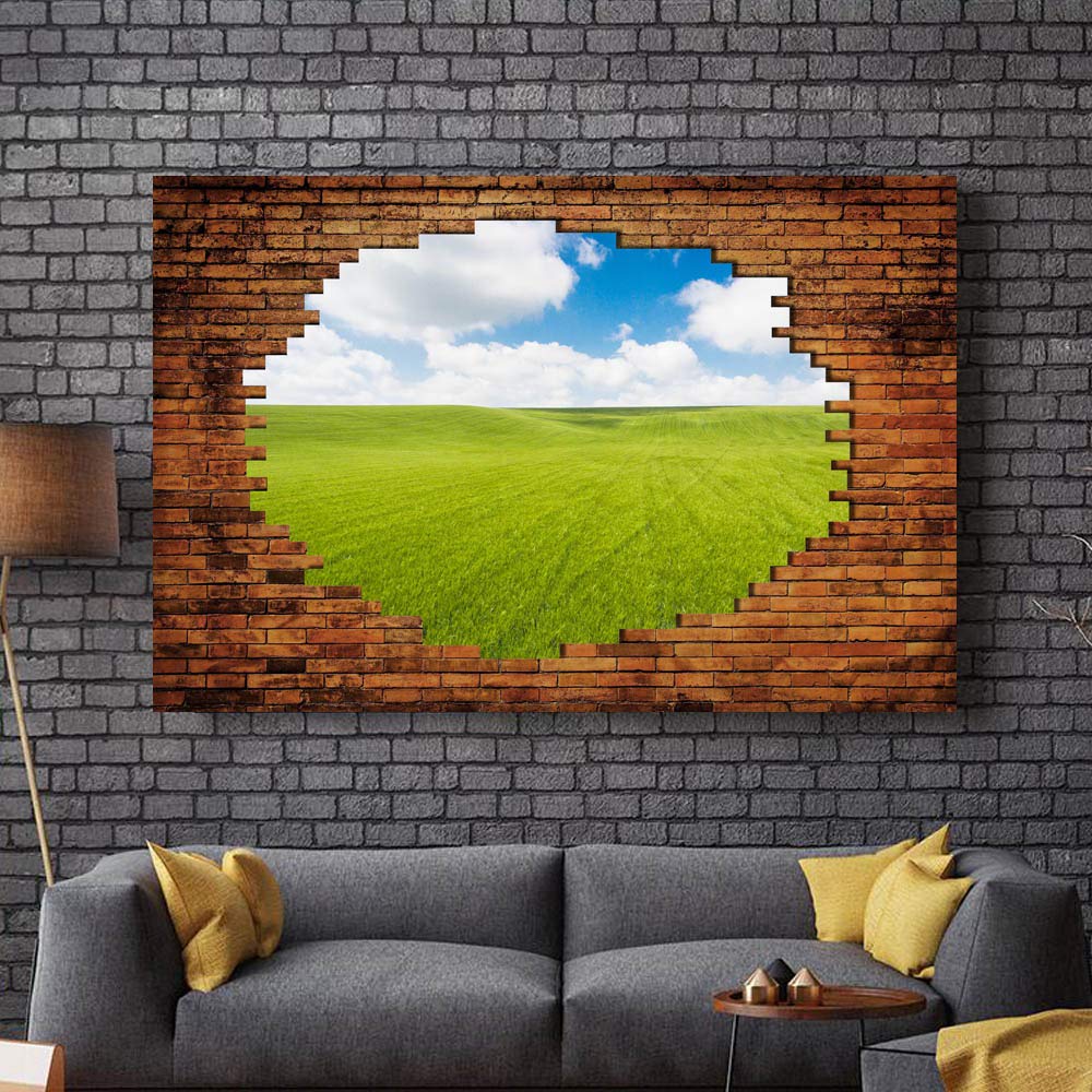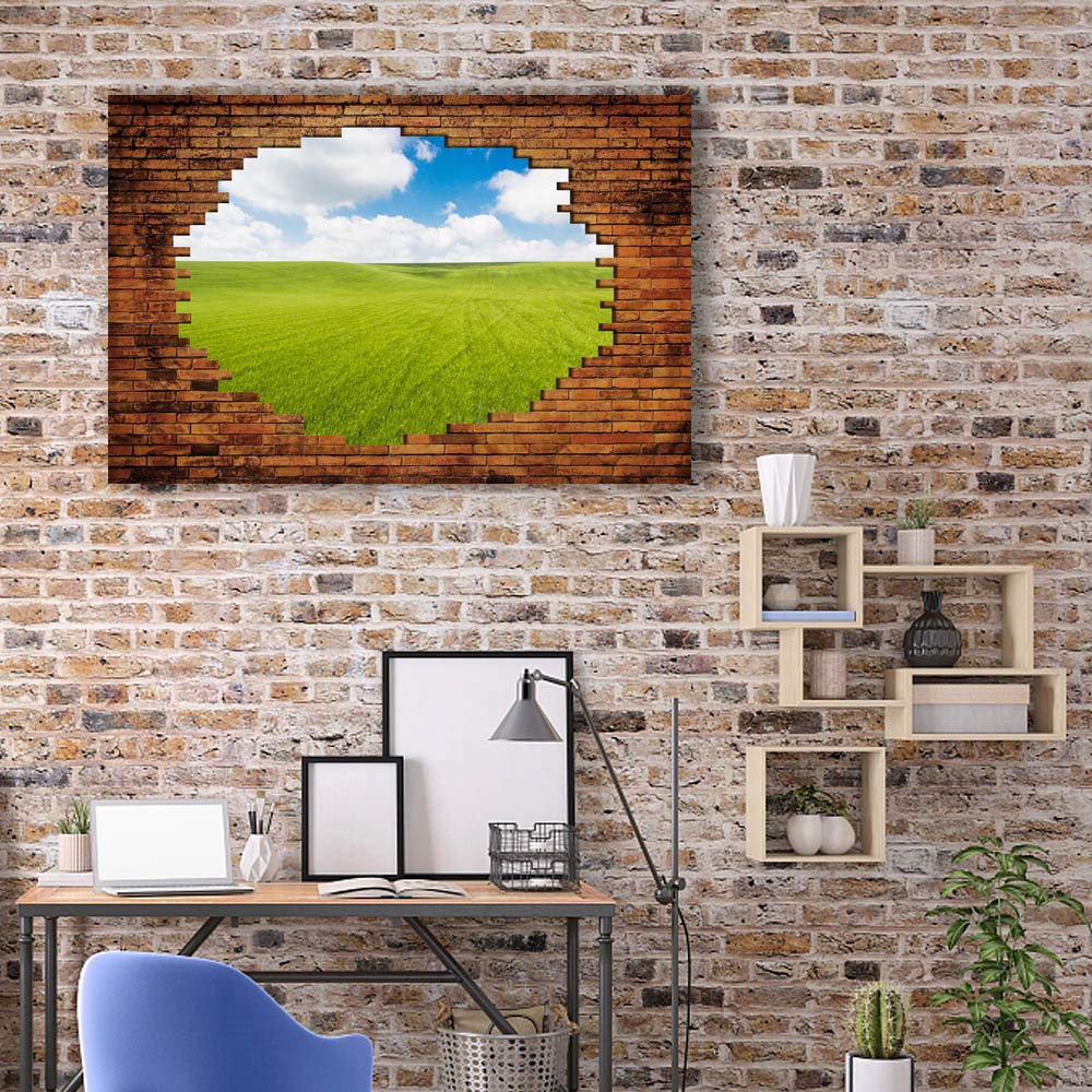 MUDECOR Canvas Wall Art Grass View Shot Through Bricks Painting Artwork for Home Prints Framed inches