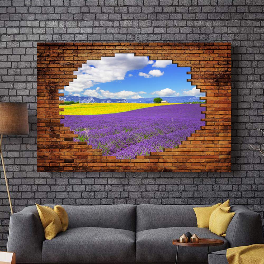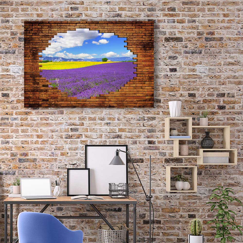 MUDECOR Canvas Wall Art Lavender View Shot Through Bricks Painting Artwork for Home Prints Framed inches