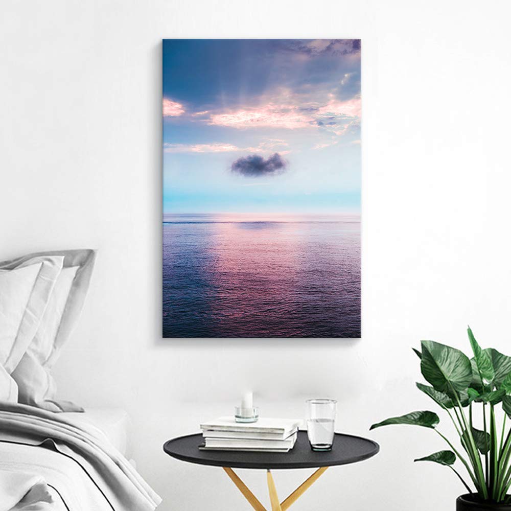 MUDECOR Canvas Wall Art Purple Sunset Flow Ocean Water Painting Artwork for Home Prints Framed inches