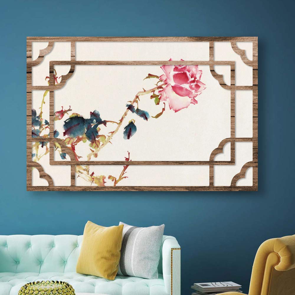 MUDECOR Canvas Wall Art Traditional Chinese Windows View Painting Artwork for Home Prints Framed inches