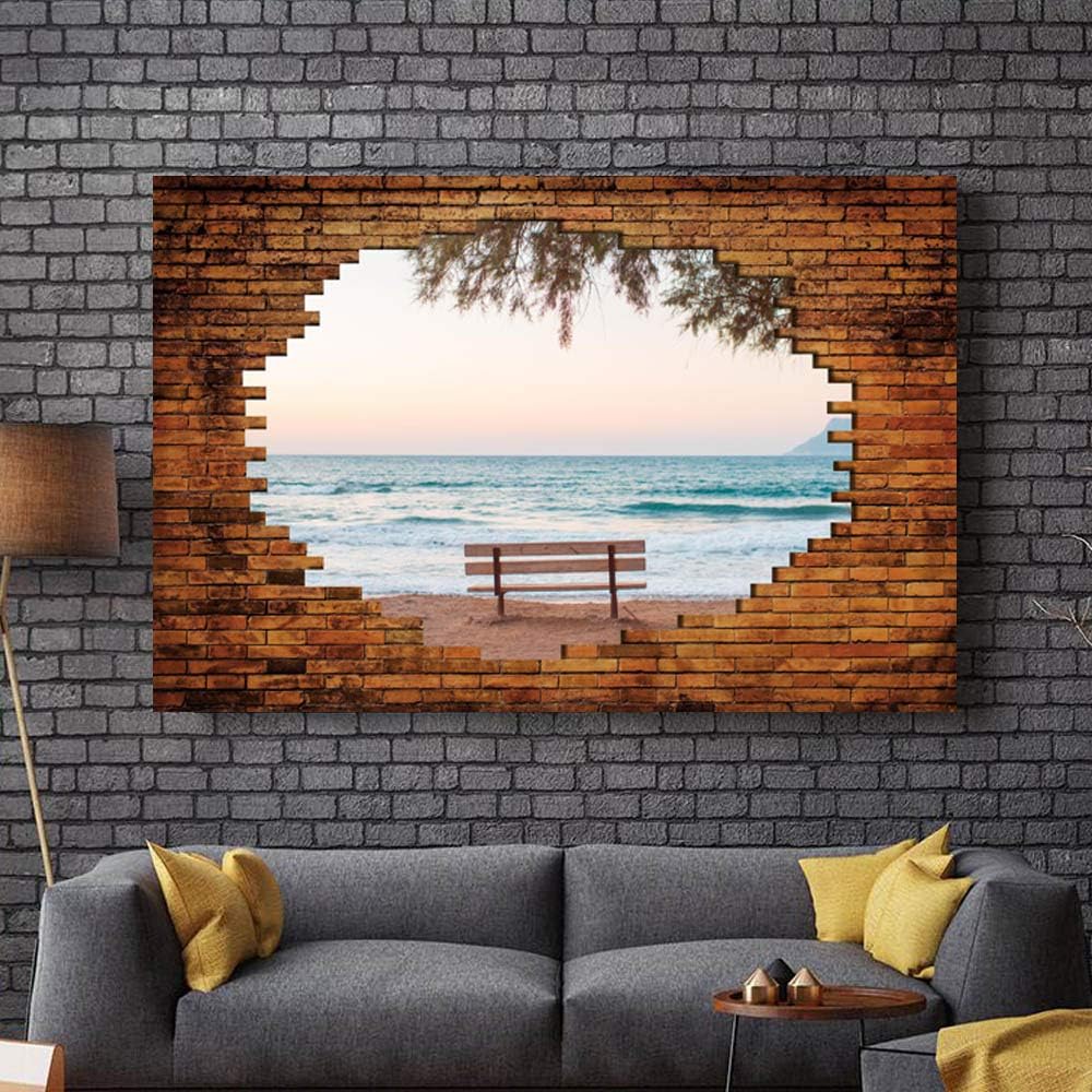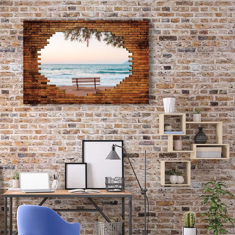 MUDECOR Canvas Wall Art Water Lake View Shot Through Bricks Painting Artwork for Home Prints Framed inches