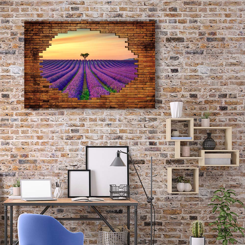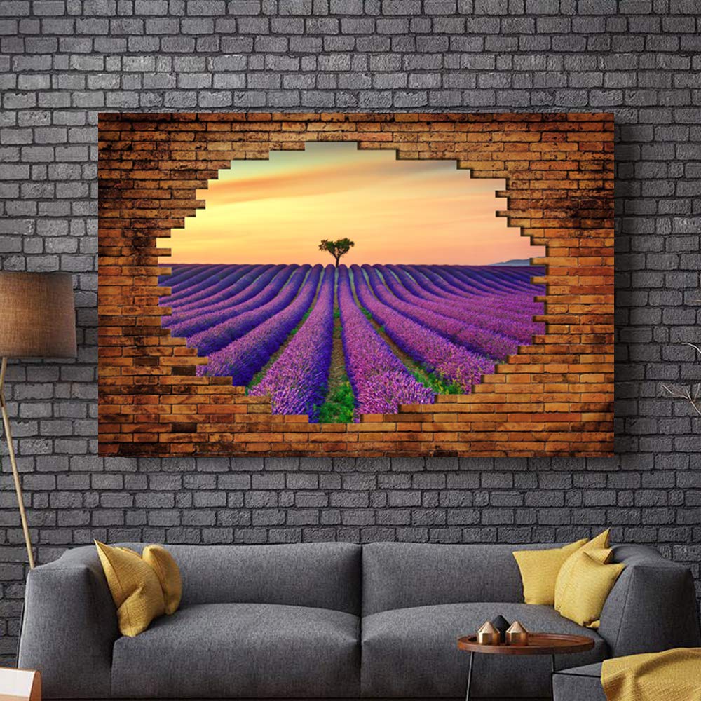 MUDECOR Canvas Wall Lavender Art View Shot Through Bricks Painting Artwork for Home Prints Framed inches