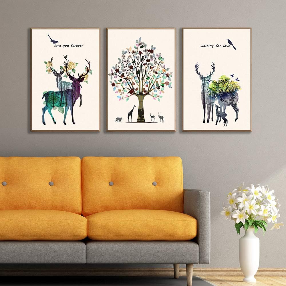 MUDECOR Framed Canvas Wall Art for Living Room Bedroom Beautiful Deer in Forest Canvas Prints for Home Decoration Ready to Hanging x3 Panels