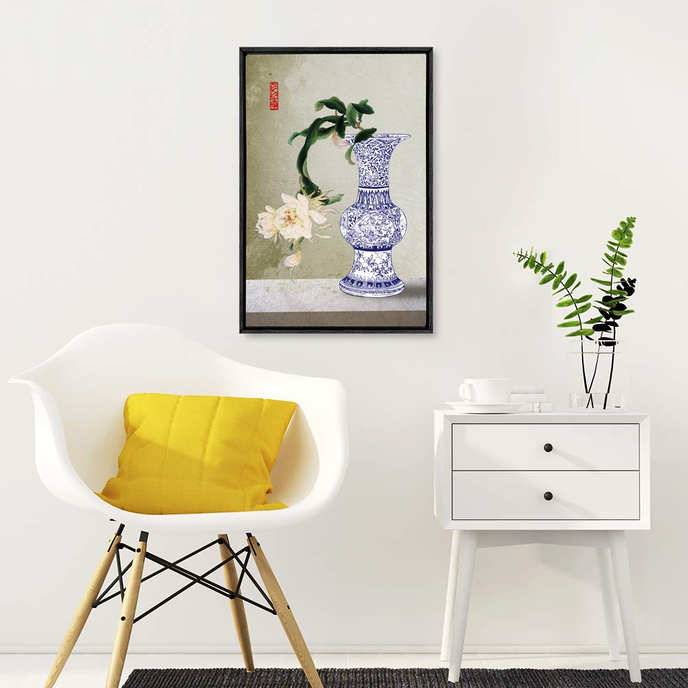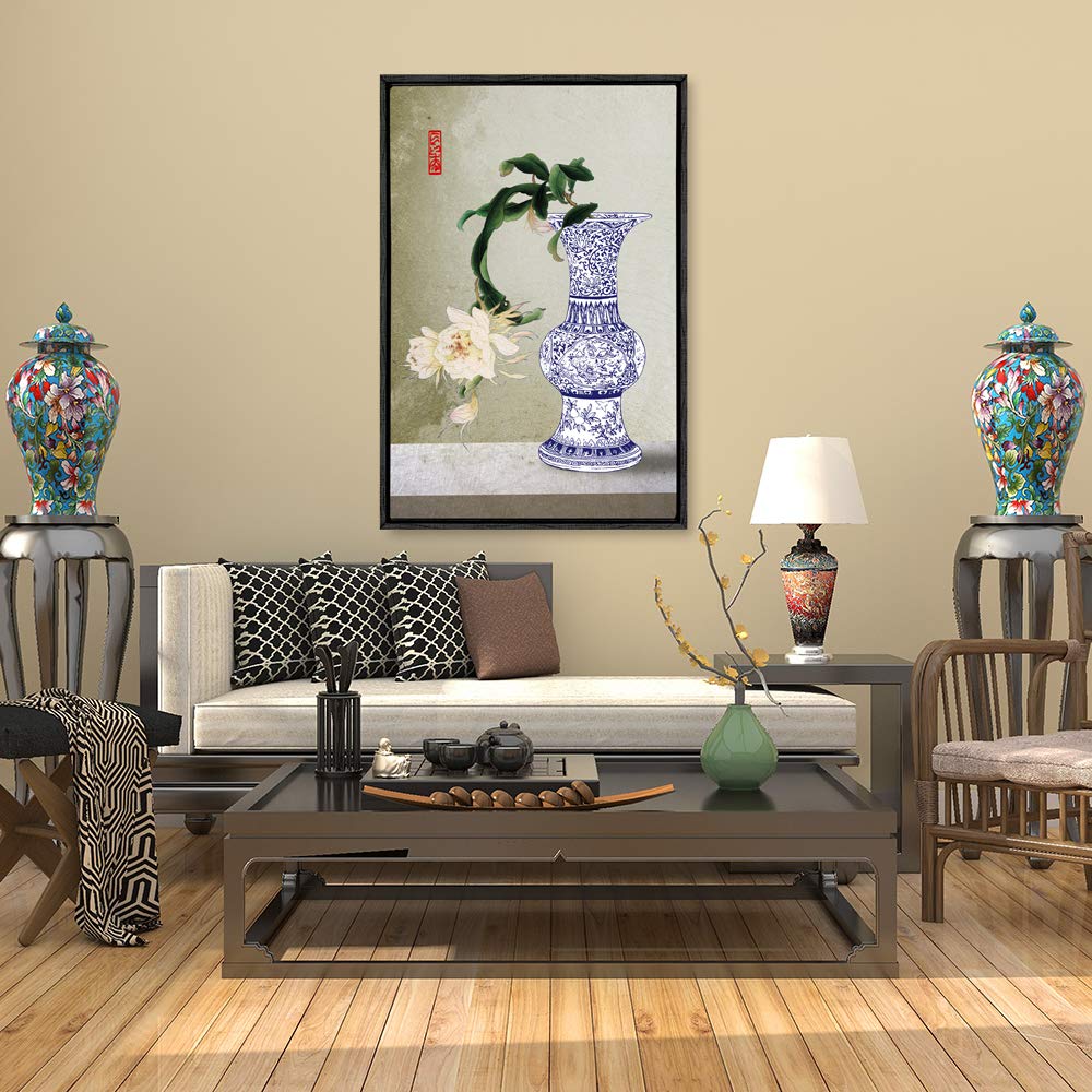 MUDECOR Framed Canvas Wall Art for Living Room, Bedroom Blue and White Porcelain Canvas Prints for Modern Home Decoration Ready to Hang - 16"x24" inches