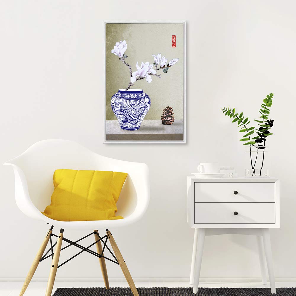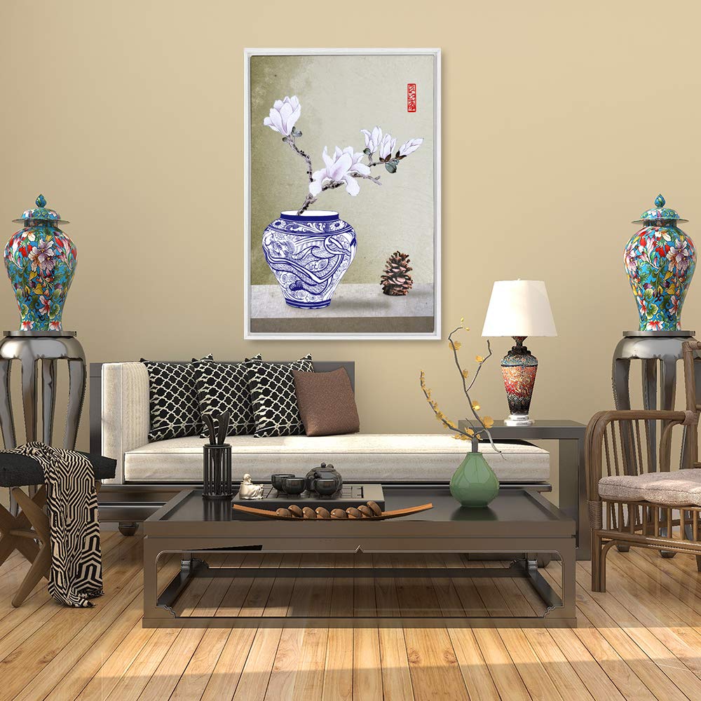 MUDECOR Framed Canvas Wall Art for Living Room, Bedroom Blue and White Porcelain Canvas Prints for Modern Home Decoration Ready to Hang - 24"x36" inches