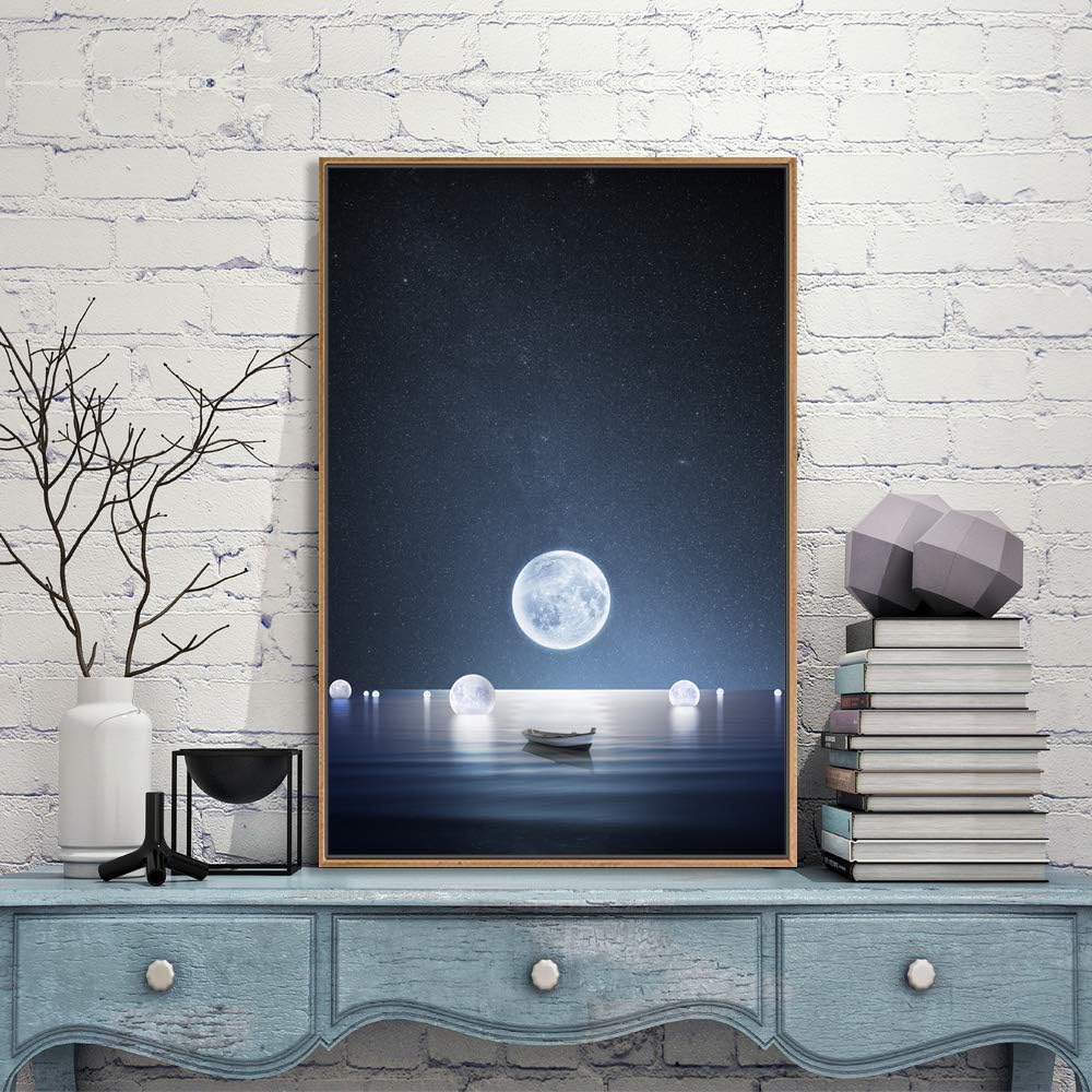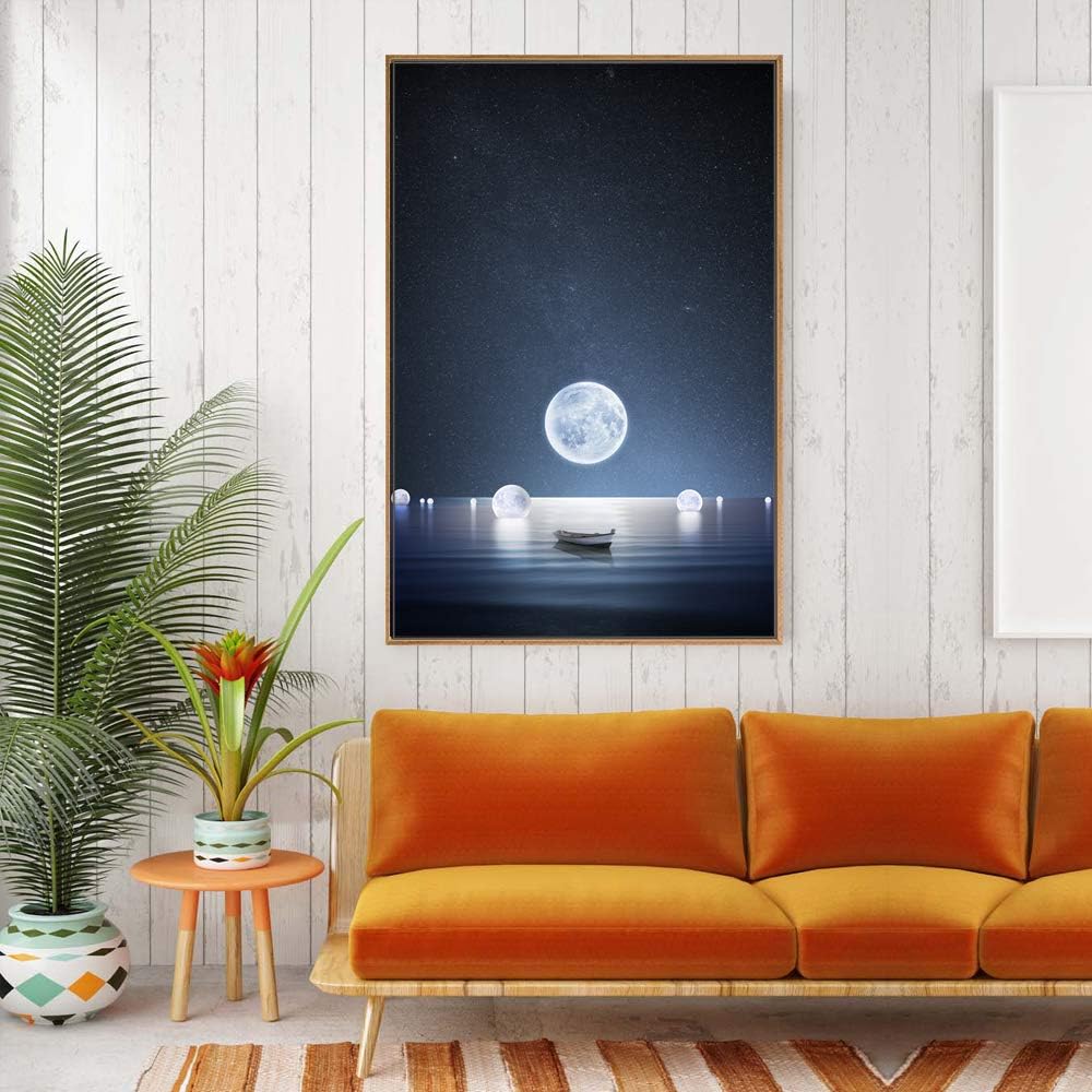 MUDECOR Framed Canvas Wall Art for Living Room Bedroom Moon with Bright Canvas Prints for Modern Home Decoration Ready to Hang inches