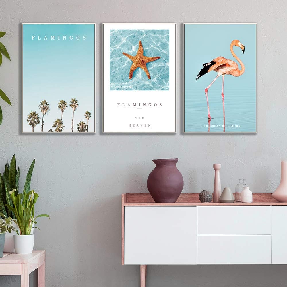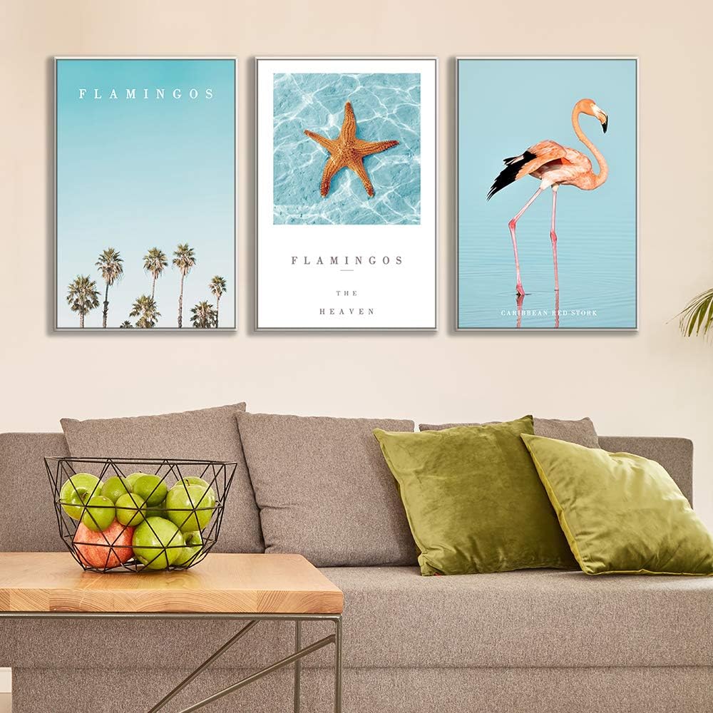 MUDECOR Framed Canvas Wall Art for Living Room Bedroom Pink Flamingo Canvas Prints for Home Decoration Ready to Hanging x3 Panels