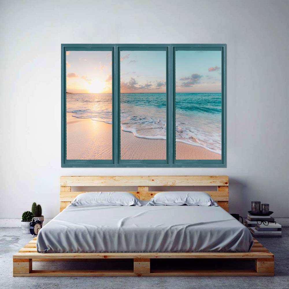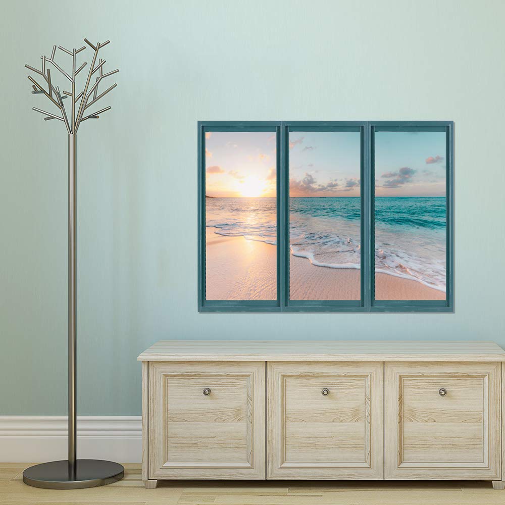 MUDECOR Wall Murals for Bedroom Fake Window Beach Blue Window Removable Wallpaper Peel and Stick Wall Stickers inches