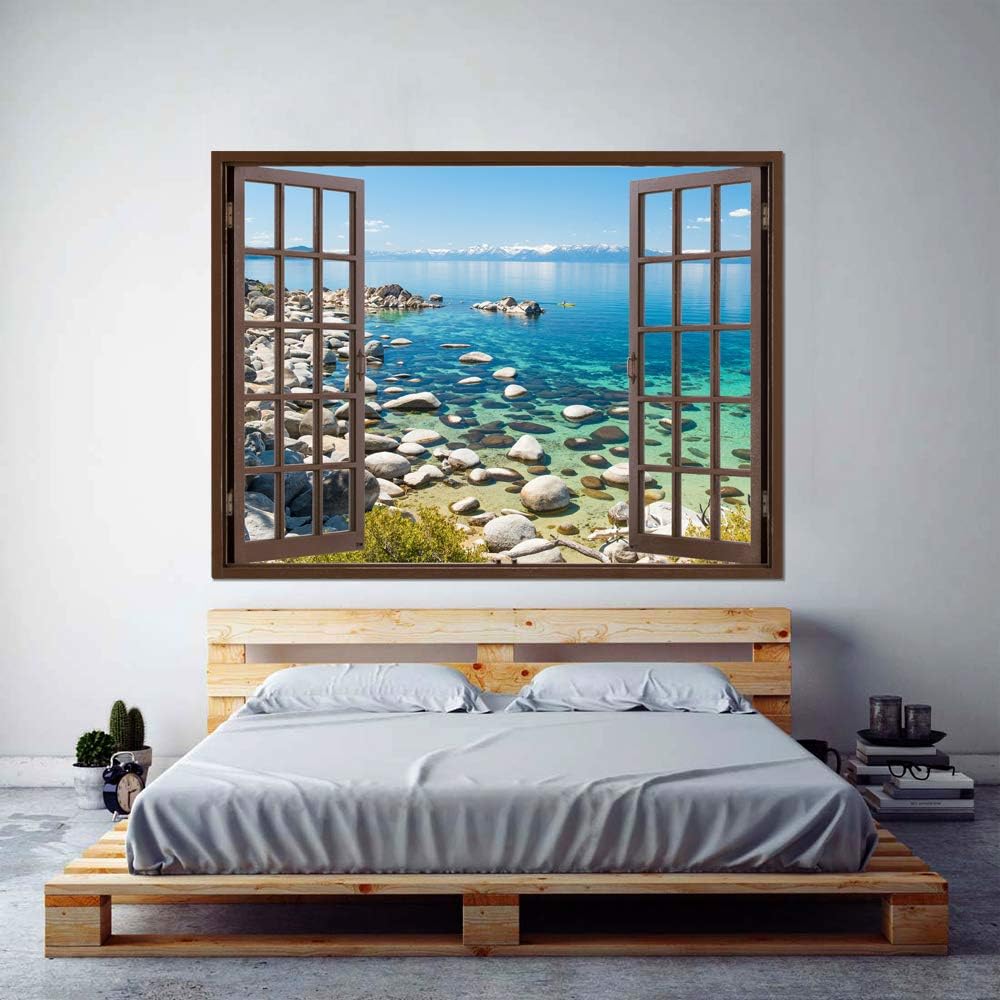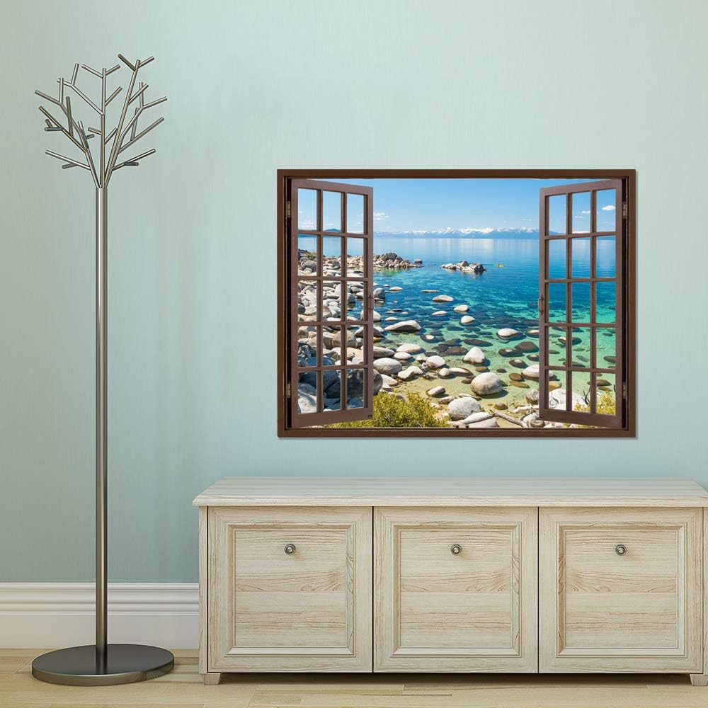 MUDECOR Wall Murals for Bedroom Fake Window Beach Brown Window Removable Wallpaper Peel and Stick Wall Stickers inches
