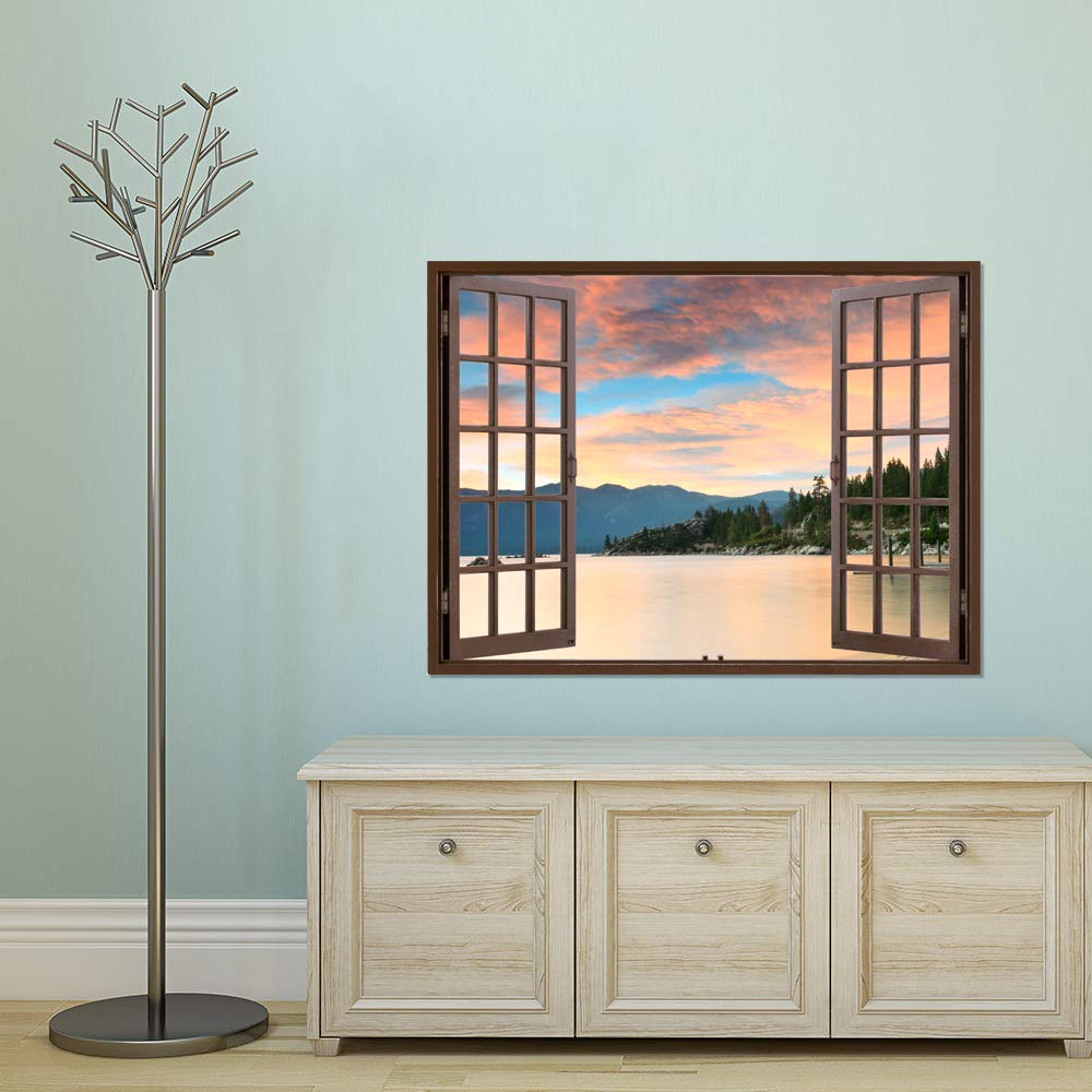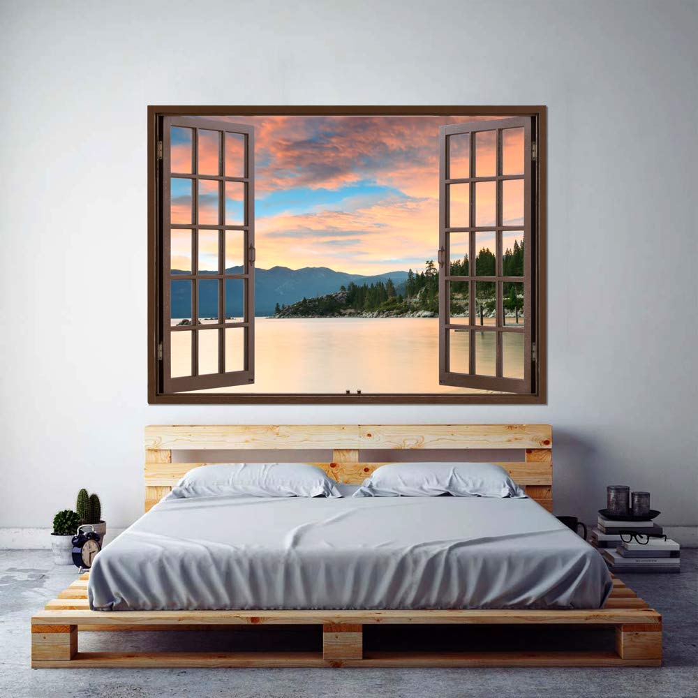 MUDECOR Wall Murals for Bedroom Fake Window Beach Brown Window Removable Wallpaper Peel and Stick Wall Stickers inches